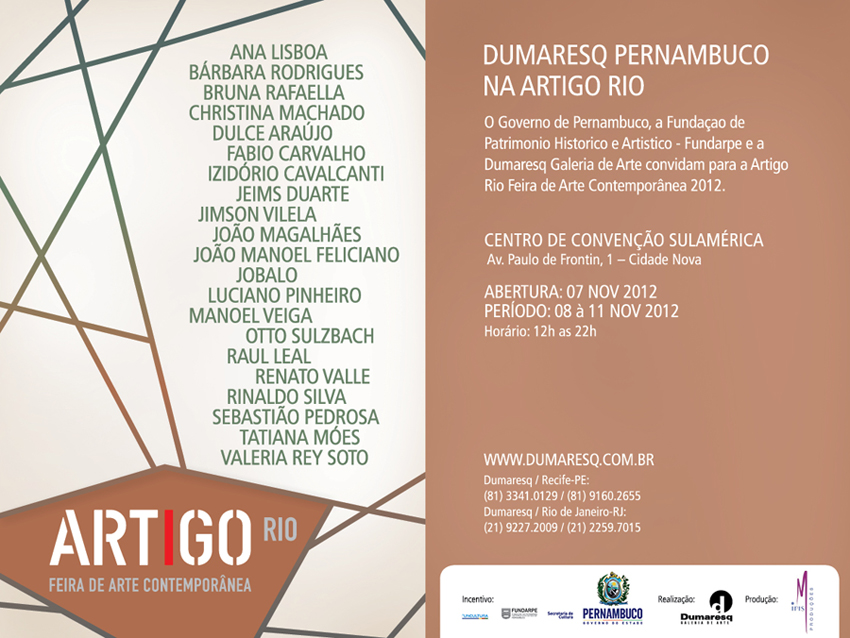 “Pernambuco na Artigo Rio, Salão de Arte Contemporânea” – Dumaresq Galeria de Arte. Rio de Janeiro. Rio de Janeiro. Brasil